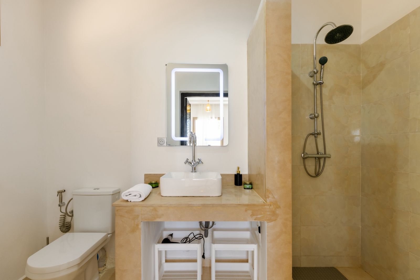 4 suites avec chacune sa salle d’eau et toilettes coffre fort dans chaque chambre Clim réversible LG partout dans la villa.